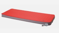 Dank des weichen Bezugs hat die Isomatte eine angenehme Oberfläche und die luftgefüllten Stege sind kaum zu spüren. Dank der Bauart ist die Matte selbstaufblasbar. Lediglich die individuelle Härte wird mit der mitgelieferten Handpumpe nachgepumpt.