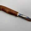 Durch den spindelförmig zulaufenden Griff liegt das Messer sicher und fest in der Hand. Mit der spitz zulaufenden 6cm Klinge kannst du auch feinste Schnitzarbeiten durchführen. Der verwendete Carbonstahl besitzt die nötige Härte, um langanhaltend scharf zu bleiben.