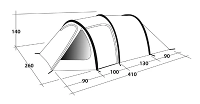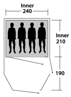 Hochwertiges Tunnelzelt für 4 Personen zum Campen mit dunklem Innenraum und großem Vorzelt.
