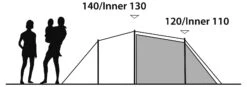 Trotz der Größe bringt das Zelt nur 7.300g auf die Waage. Bei dem Zelt handelt es sich um ein klassisches Tunnelzelt mit drei Stangen. Neben der Schlafkabine befindet sich im Eingangsbereich enorm viel Platz für das Gepäck und das Abendessen bei schlechtem Wetter. Die eigentliche Schlafkabine ist mit einem Moskitonetz ausgestattet. So bleiben die kleinen Plagegeister draußen und es findet dennoch eine gute Luftzirkulation statt.