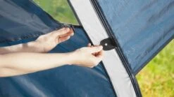 Das Besondere der Earth Serie ist die dunkle Schlafkabine. Sowohl das Innenzelt auf der Innenseite, als auch das Innenzelt selbst sind in dunklem grau gehalten, sodass zum einen die früh aufgehende Sonne nicht mehr stört und zum anderen die Hitze besser draußen bleibt.
