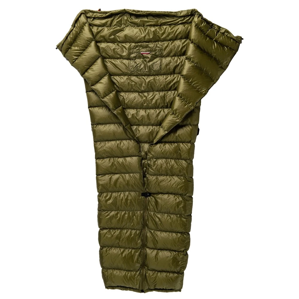 Gefüllt mit 700 Cuin FP Entendaune aus Polen, sorgt dieses Teil für gute Isolation – ob auf dem Boden oder in der Hängematte! Zusätzlich kann über einen Kordelzug die Fußbox verschlossen werden und über den seitlichen Reißverschluss wird der Quilt zum Sommerschlafsack ohne Kapuze.
