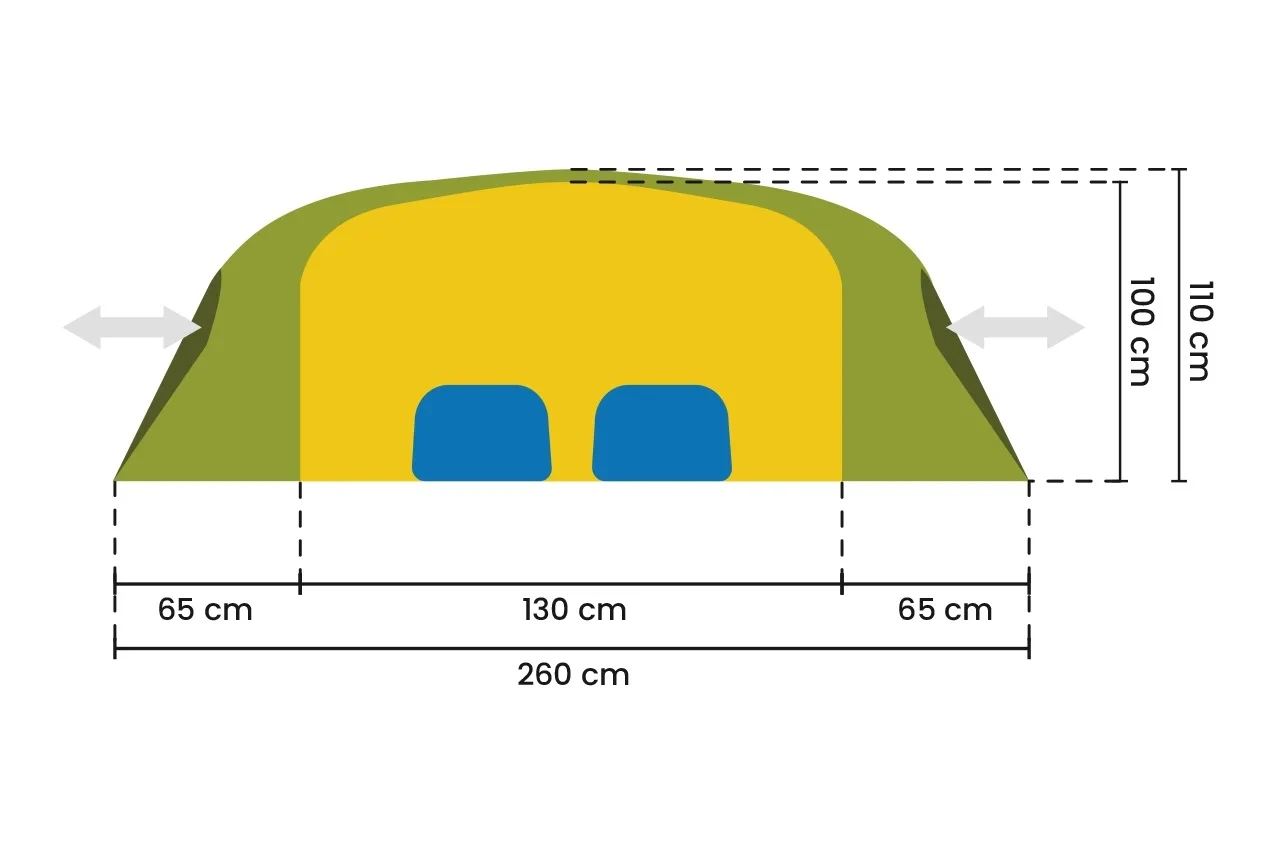 In den zwei Eingangsbereichen hast du die Möglichkeit, dein Gepäck trocken zu verstauen oder bei schlechtem Wetter notfalls etwas zu kochen. Durch die steilen Wände und den großzügigen Schnitt erhält man im Agadir ein unglaubliches Raumgefühl. Alles in allem ein grundsolides Zelt aus hochwertigen Materialien.