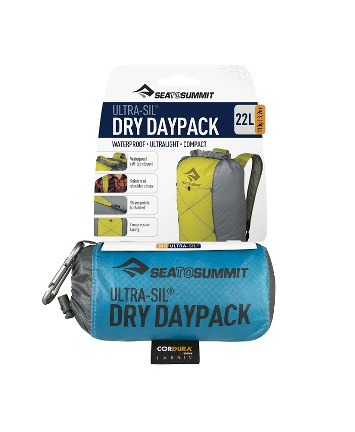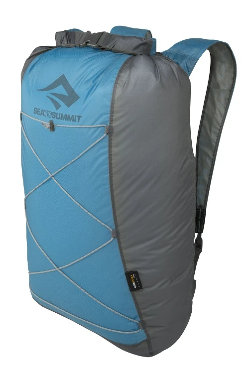 Das Daypack Dry von Sea to Summit besteht aus hochfestem Cordura, welches an bestimmten Punkten zusätzlich verstärkt ist und so das bis zu 250fach seines Eigengewichts tragen lässt.