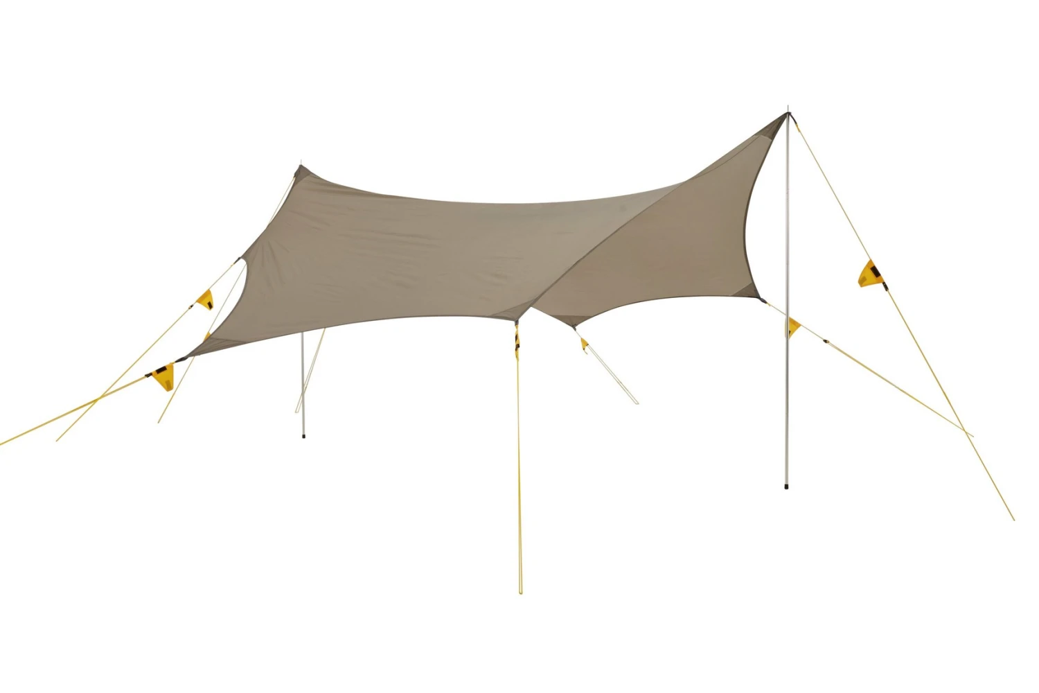 Durch den speziellen Schnitt des Tarps lässt sich hervorragend als Vordach für dein Zelt verwenden. Aber nicht nur als Vordach lässt es sich verwenden, sondern auch solo.